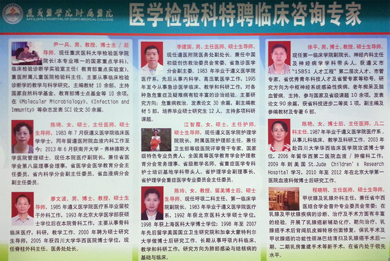 BEVITOR伟德附属医院医学检验科地址:贵州省遵义市大连路149号 电话:(0851)28608182 邮编:563003