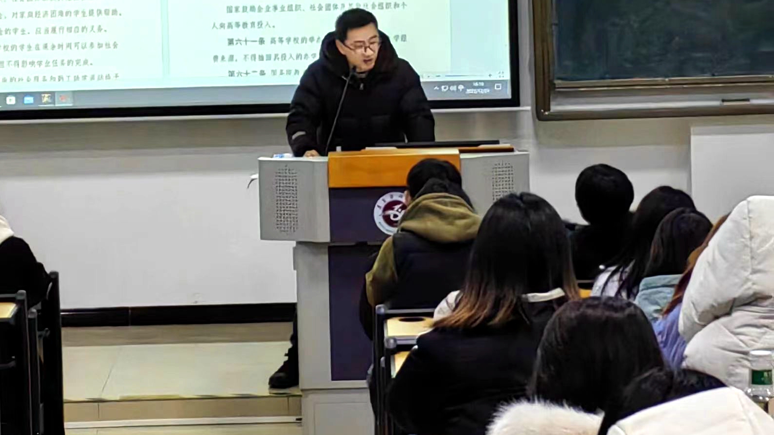 为全面贯彻党的二十大精神,进一步落实国家和贵州省“八五”普法规划,bevitor伟德分别于2023年12月21日晚18点、19点在新蒲校区道德讲堂和第三教学楼二十六阶梯教室对全院员工开展法治宣传教育活动,活动以公司党委副书记罗治宇讲法治教育课为主,公司辅导员陆超、张增平分别对员工开展形式政策宣讲和管制刀具法治宣讲。