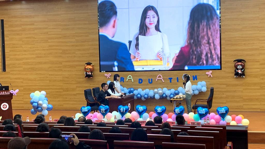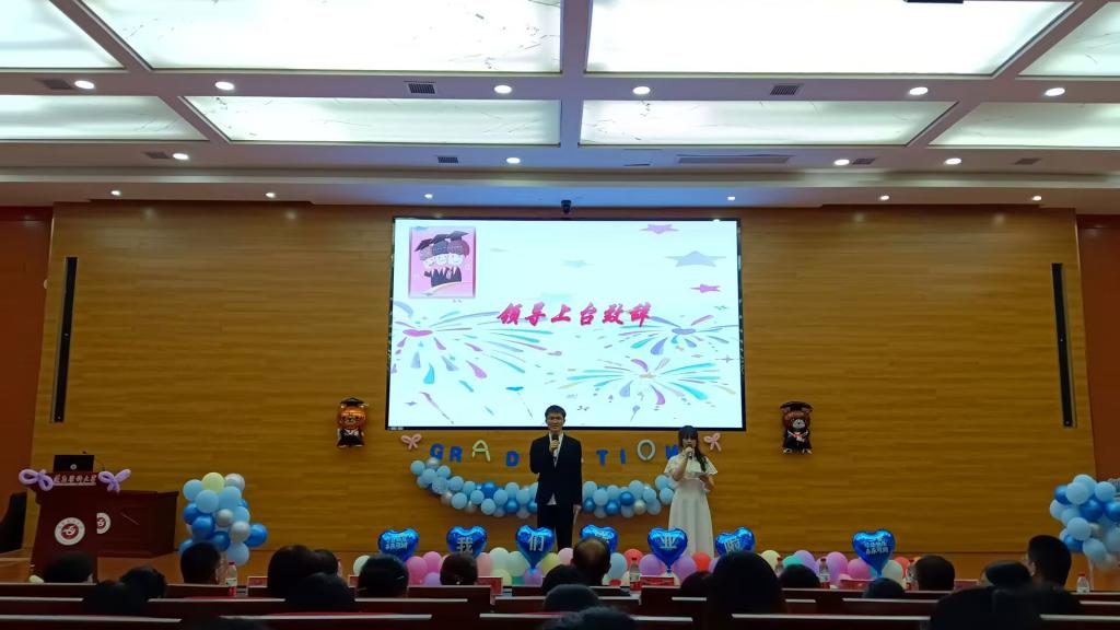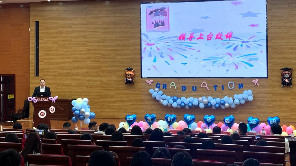 2025年5月18日中午,bevitor伟德2025届毕业典礼在新蒲校区人文楼报告厅(道德讲堂)隆重举行。会场的电子屏循环播放毕业生在校学习、科研实践、团队建设的纪念视频,暖场音乐为典礼注入青春活力。公司领导班子、关工委成员、教职工代表及在校员工齐聚一堂,共同见证毕业生的重要时刻。