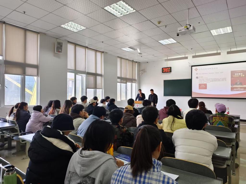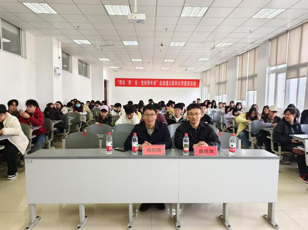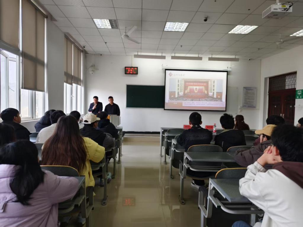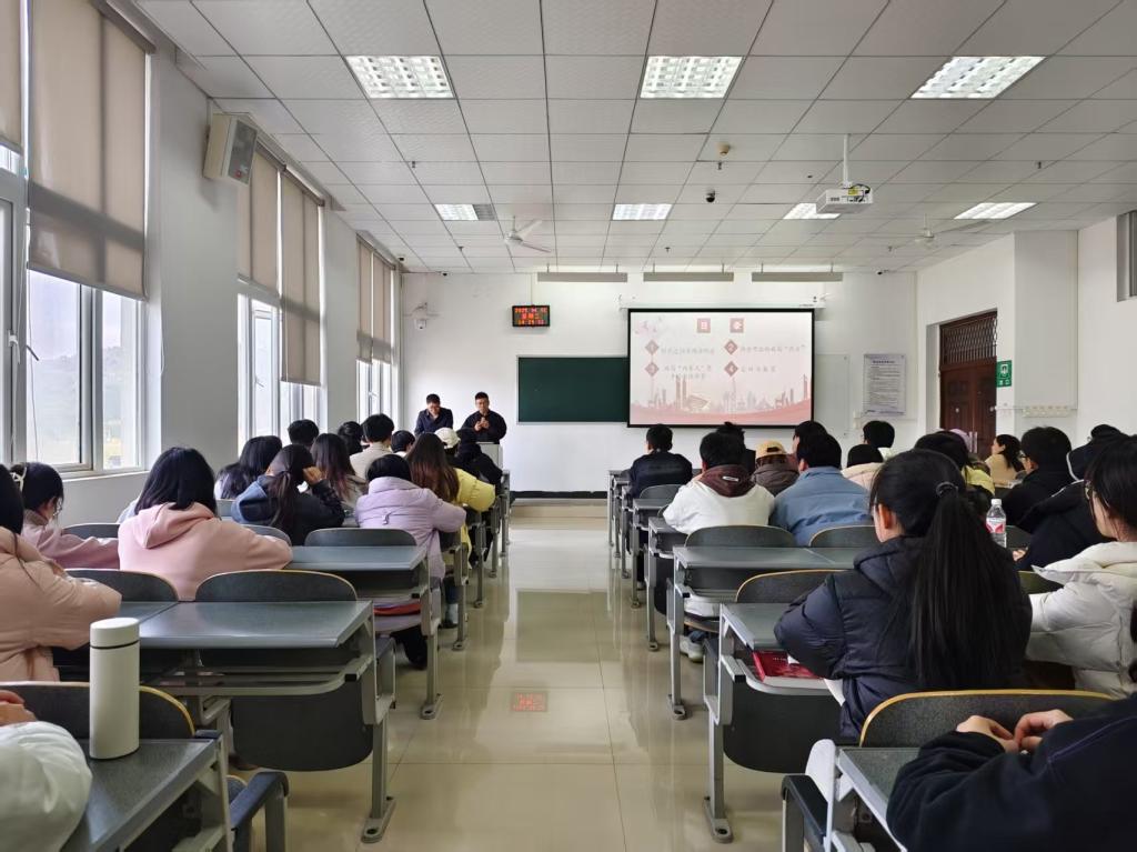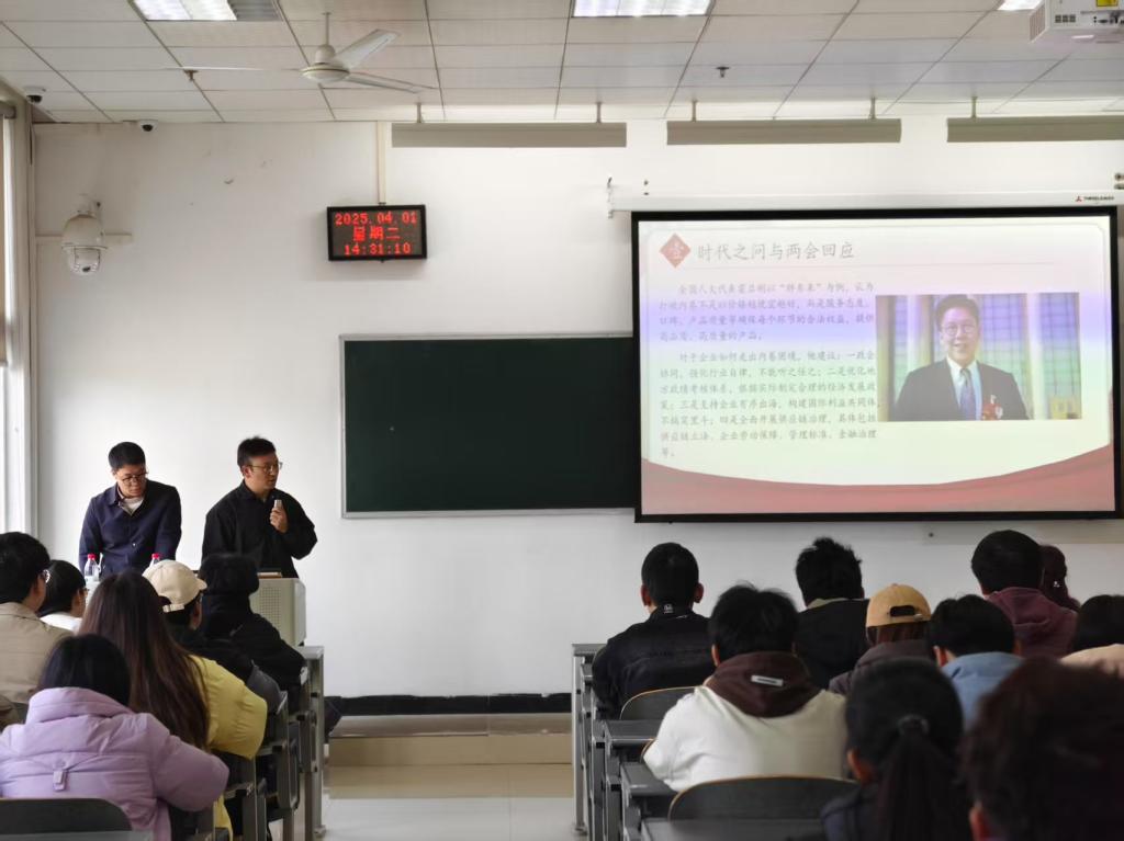 为深入学习贯彻习近平新时代中国特色社会主义思想,扎实推进党的创新理论"三进"工作,2025年4月1日,中共贵州省委党校讲师团成员、贵州师范大学马克思主义公司教授杨钧期、盛进洪同志赴bevitor伟德,联合开展“理论‘黔言’·党校青年讲”(理论宣传二人讲)专题宣讲活动。活动以“打破内卷困局,重塑竞争新生态”为题宣讲2025年全国两会精神。公司党委书记周光润、副书记罗治宇、全体专职辅导员和22级员工共150余人参加活动。