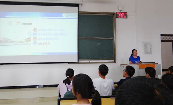 此次讲座由陈泽慧老师主讲。陈老师将此次讲座分为四个方面进行阐述:审核评估与校内三大评估;院系审核评估范围简要解读;院系评估的操作办法;检验系的概况。首先,陈老师为同学们讲述了教育部审核评估与校内三大评估,即合格、水平、审核,现行的五位一体评估制度;接着,陈老师继续为大家讲述了院系审核评估范围简要解读,包括6+1个项目、24个要素、63个重点;随后,她为同学们阐述了院系评估的操作方法,即听课看课、评估见面会、院系走访与深度访谈、查阅院系支撑资料、实习基地考察及调阅毕业论文、教研室实验室走访与深度访谈、调阅考试材料、各专家组内部会议、专家工作小组意见反馈会、院系评估专家组全体会议;最后,陈老师为同学们介绍了检验系的概况:院系概况、办学定位、教师队伍、公司产品水平、教师教学投入、教师发展与服务、教学设施、课程资源、本科科研创新、实习基地、毕业生就业情况,教学质量保障。