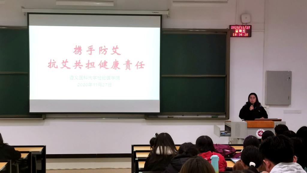 今年12月1日是第24个“世界艾滋病日”,防艾工作刻不容缓。活动首先由杜玥同学带领同学们认真学习了艾滋病病因、传播途径、预防知识、如何关爱艾滋病患者等相关知识,让广大同学们对艾滋病的认识更全面。据了解,全球因感染艾滋病而死亡的人数是触目惊心的,并逐年增长,因此防治艾滋病工作任重而道远,需要全人类的共同努力,共同防治。