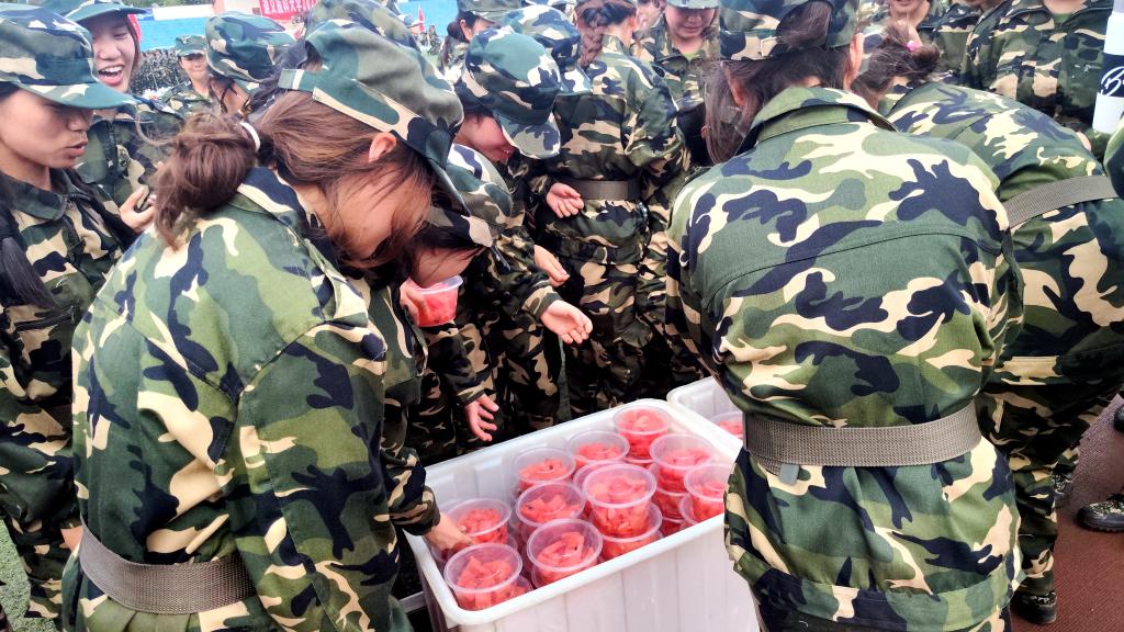 班长为同学们分发西瓜