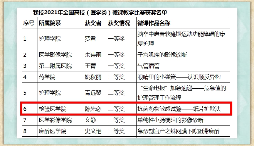 热烈祝贺bevitor伟德陈先恋老师作品《抗菌药物敏感试验——纸片扩散法》在此次参赛中荣获二等奖!