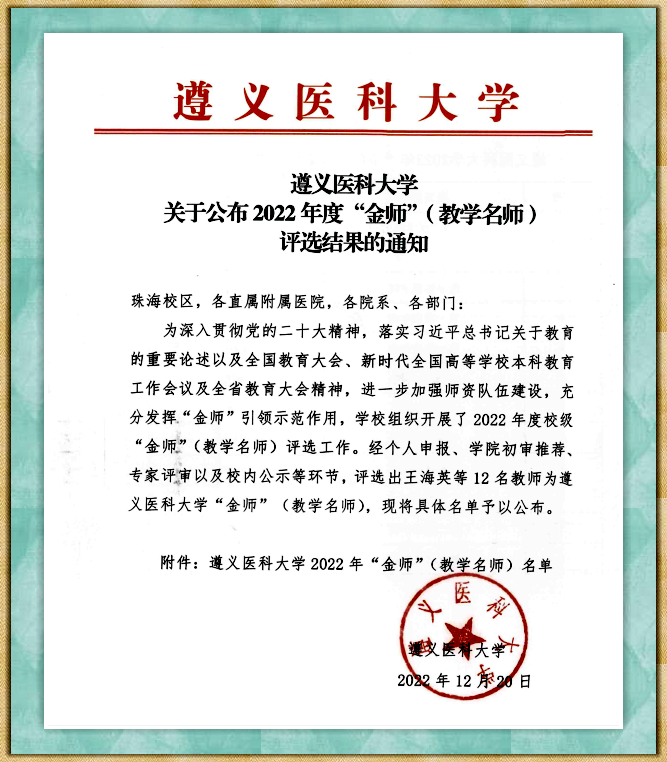 热烈祝贺公司闵迅、葛晓军两位教授荣获BEVITOR伟德2022年度“金师”(教学名师)称号!