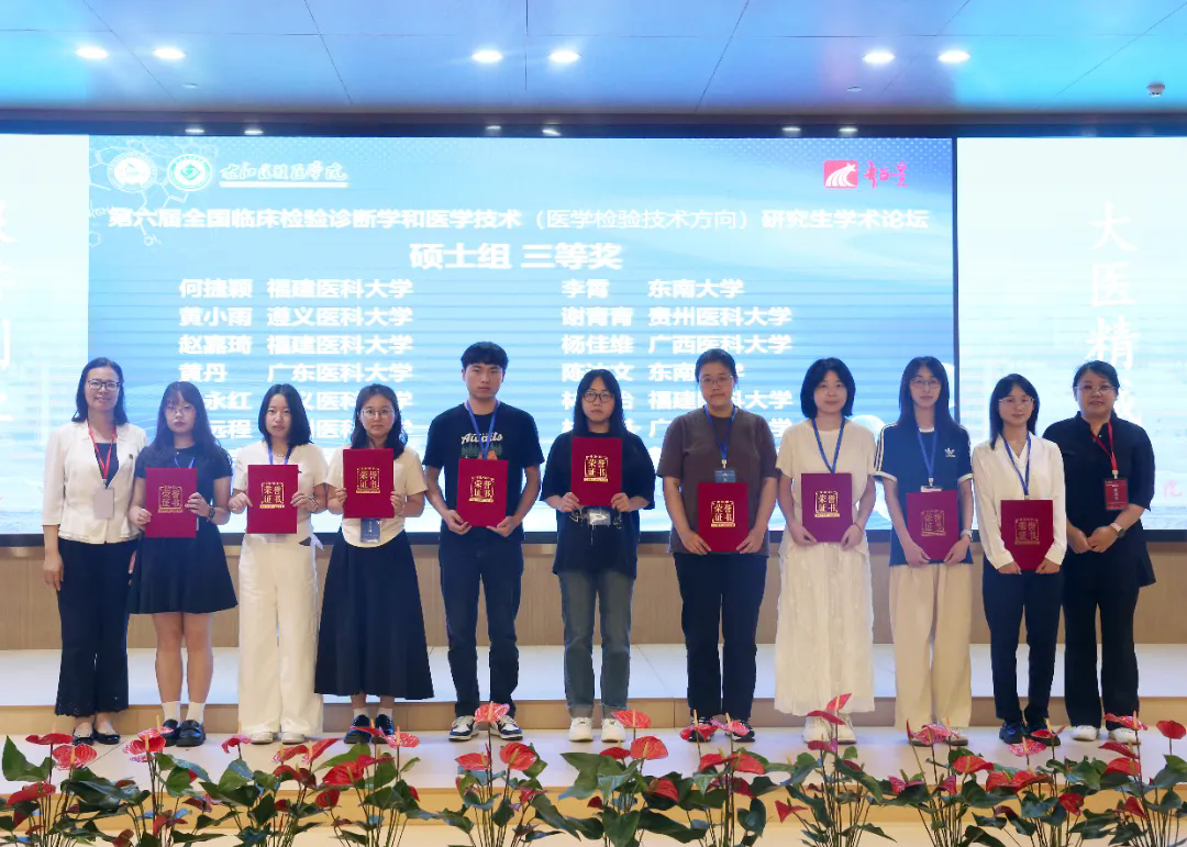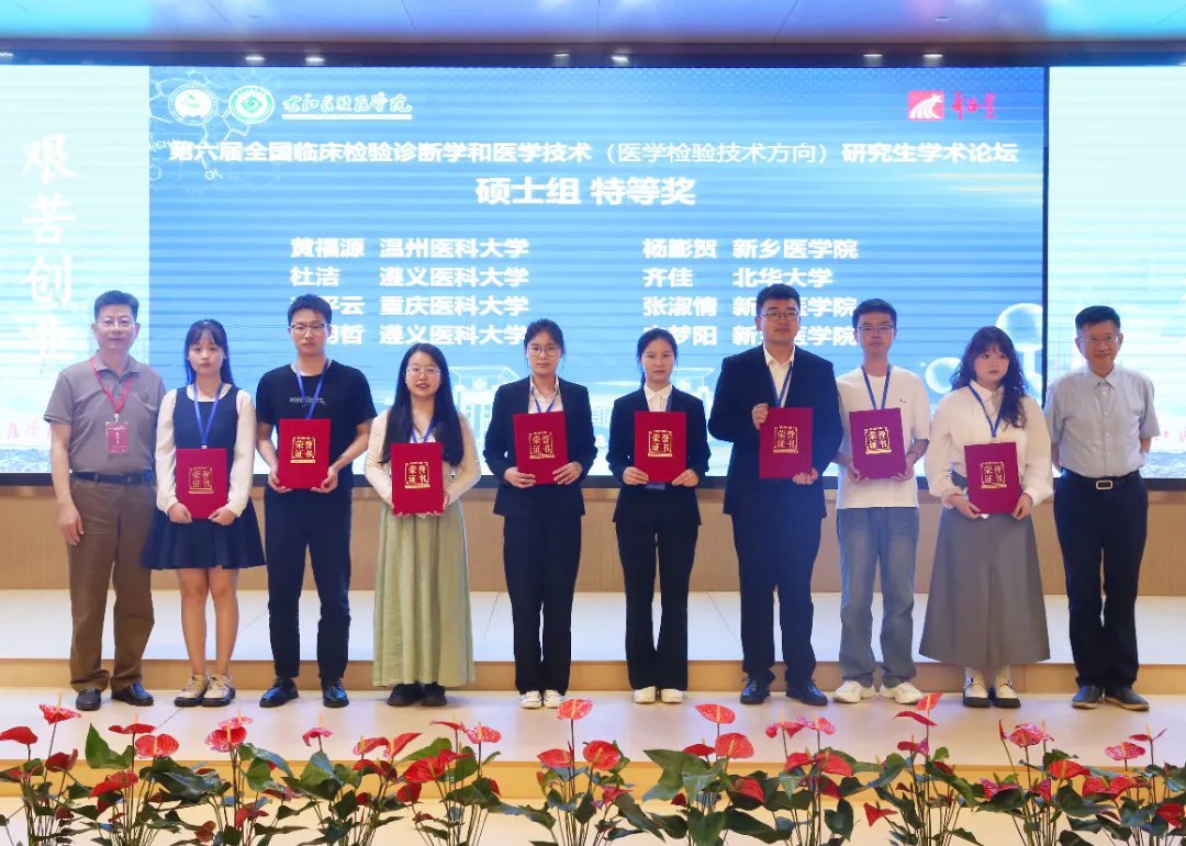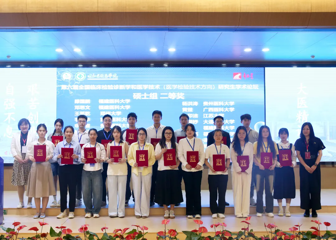 硕士研究生分论坛汇聚全国各知名高等院校百余位优秀学子同台竞技。参赛选手以饱满昂扬的精神风貌为底色,凭借视角新颖的选题设计和方法独到的学术探索,呈现了一场场思维碰撞、精彩纷呈的学术盛宴。其中公司临床检验诊断学专业硕士研究生胡华琴就《融合魏斯氏菌 RY-1调控DSS诱导的UC小鼠的效应和机制研究》、刘洲亨就《LASS2 通过与 MDM2/MDMX 的相互作用增强 p53 蛋白的稳定性和核易位进而抑制肝癌进程的研究》、彭艳凤就《霍乱弧菌 ZapA 蛋白在菌体分裂过程中的作用研究》、马永红就《车前草多糖通过结合半乳凝素-1抗宫颈癌活性的研究》、黄小雨就《DegS 蛋白酶通过 CdgH-VpsR途径调控霍乱弧菌生物被膜形成的机制研究》、李明哲就《巴西苏木素通过抑制hla的分泌从而降低MRSA的毒性和致病性》、杜洁就《LASS2 通过 NDUFS2-UQCRFS1-ATP5A 轴诱导线粒体能量代谢崩溃抑制三阴性乳腺癌的机制研究》进行了专题汇报并对专家提出的问题进行作答。颁奖环节中,专家组特别肯定了公司学子三大优势:研究设计科学严谨、数据支撑坚实可靠、答辩陈述逻辑清晰。其中,杜洁和李明哲斩获特等奖;胡华琴、刘洲亨、彭艳凤荣获二等奖;马永红、黄小雨获得三等奖。