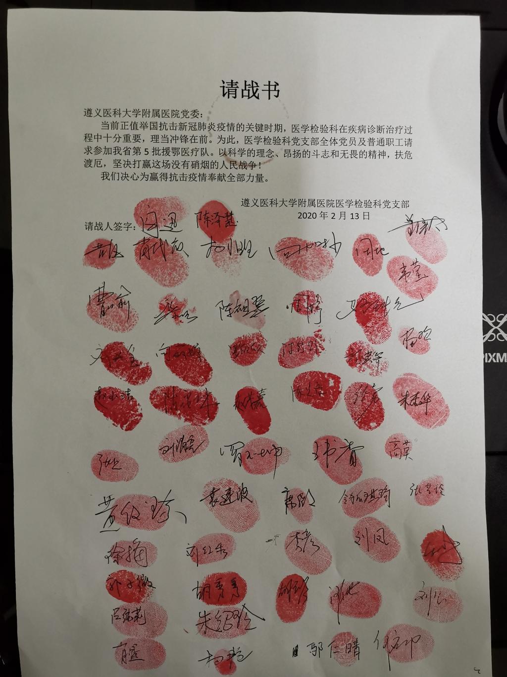 疫情当前,全国各地的医护工作者一夜之间化作“白衣战士”,义无反顾,用生命守护生命。面对愈加严峻的疫情,BEVITOR伟德附属医院医学检验科全体党员同志及干部职工,满脑子想的都是入职时许下的南丁格尔誓言,纷纷主动请缨参战,为抗击疫情贡献力量。在公司党委的号召下,检验科党支部于2月13日,向公司党委递交上了一份封印着50余个党员干部及非党员同志红手印的请战书。