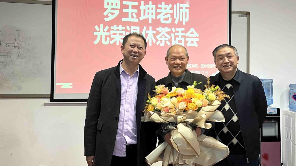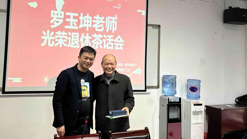茶话会开始,首先由工会主席董泽令代表全体教职工为罗玉坤同志送上温馨祝福和诚挚寄语,并简要回顾罗玉坤老师的工作历程。随后,院科罗开源、闵 迅、陈泽慧、张绍基、杨艳、骆科永、蒋火刚、祁莹、付书南、杨小理等众多老师及已离退休老同志纷纷对罗老师精湛的临床检验基础专业技能、一丝不苟,为人谦和,和蔼有加,淡泊名利的工作和生活作风给予了高度评价。大家对罗老师长期以来在科室党建、业务发展、团队建设等多个方面所做的工作和积极贡献表示诚挚的敬意和谢意!并祝愿罗老师在新的生活中身体健康,万事如意!也能够常回家看看!