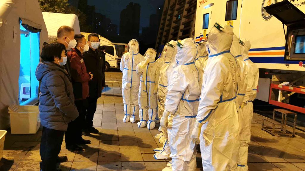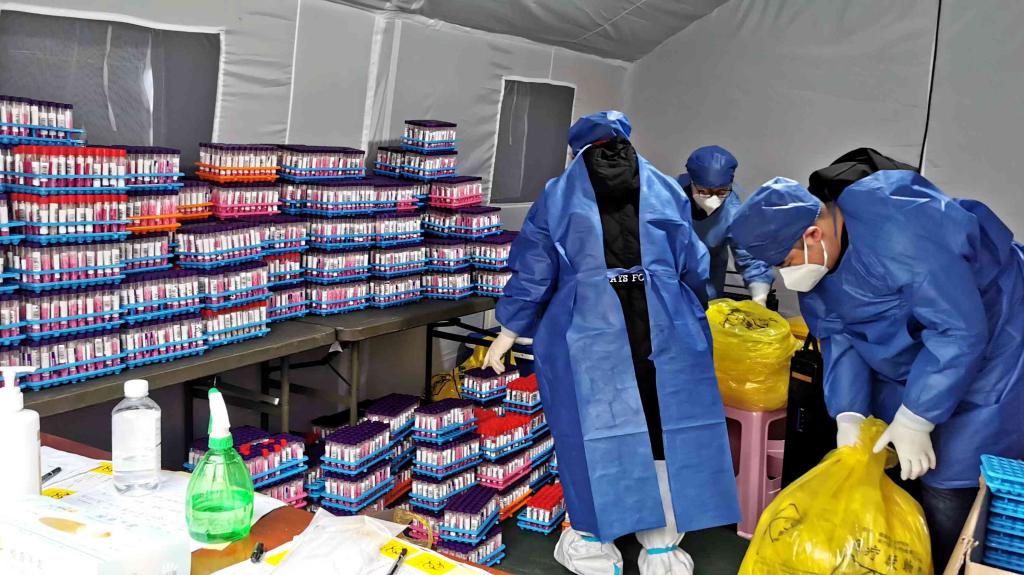 换班前的一线核酸检测人员