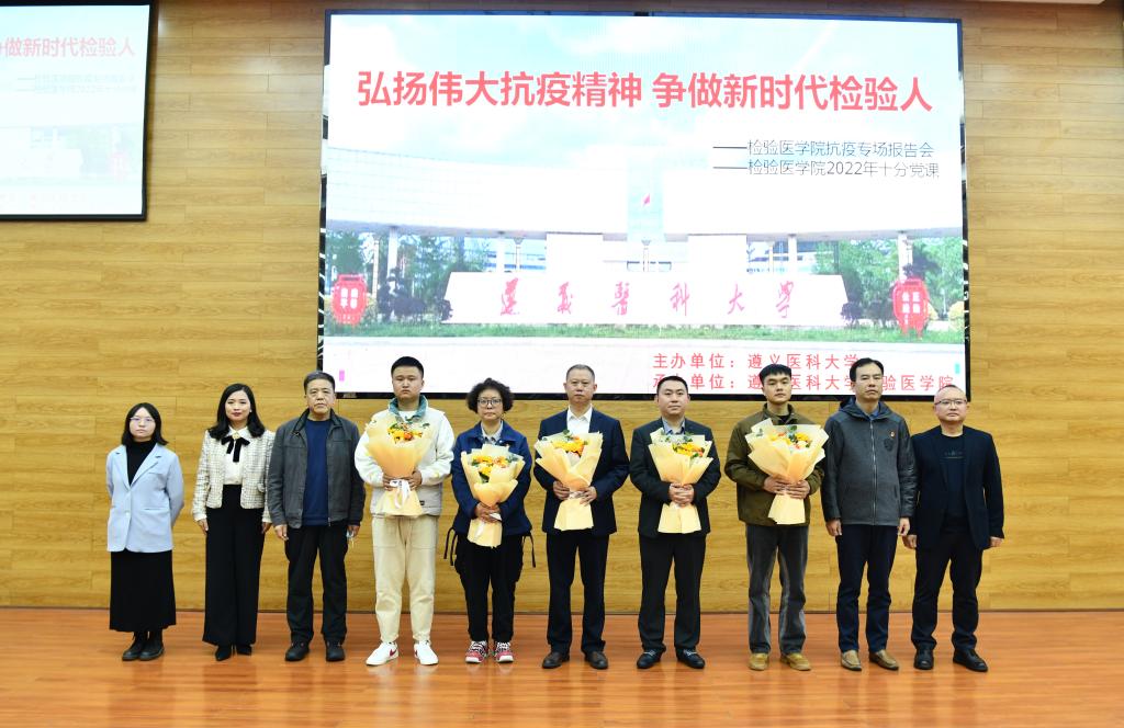 然后,bevitor伟德团委副书记、员工第二党支部副书记、辅导员付裕作了题为“战疫故事之出征贵阳”的发言。付老师用生动形象的语言动情地讲述了三位带队老师和百名检验学子援“筑”二十天里的故事。一幕幕同心战疫的情景,一幅幅感人至深的画面,都镌刻些遵医检验人的使命担当,讲述着越是艰险越向前的斗争精神。付老师提到,百名检验学子在危难时刻主动请缨,挺身而出,无畏逆行,用星火点亮人间大爱,用无私奉献的精神凝聚起战胜困难的磅礴力量,在这场疫情大考中交出了满意的答卷。
