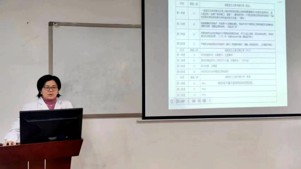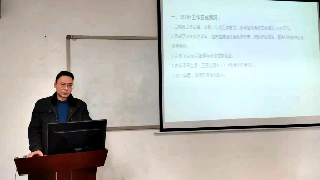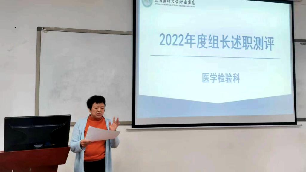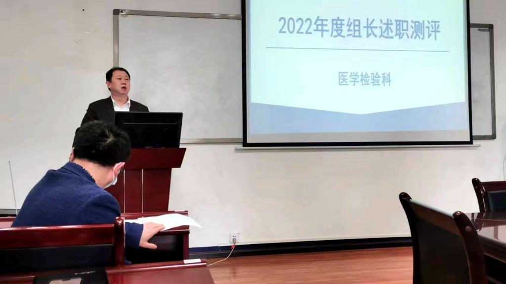 首先,闵迅主任在述职开始环节强调:本次年终绩效考核述职的目的和评定要求,并阐述了本次述职测评评分标准和注意事项,要求本次汇报应秉持“公开、公平、公正”原则进行现场评分。紧接着由9名各专业组组长依次述职,分别就ISO15189分管工作、新技术新项目开展情况、室间质评和室内质控、工作量及成本效益、外出培训学习交流情况、科研论文及教学情况、新年工作计划等方面展开现场汇报。在组长述职环节完成后,由支部书记陈泽慧就述职情况进行点评。陈书记建议:组长述职内容应细化,并包含专业组所有组员的成绩展示。此外,个专业组共性问题是对新技术新项目的开展及宣传较为欠缺,主动与临床沟通较少。并提出对新一年的工作计划应更加详细、指标明确。