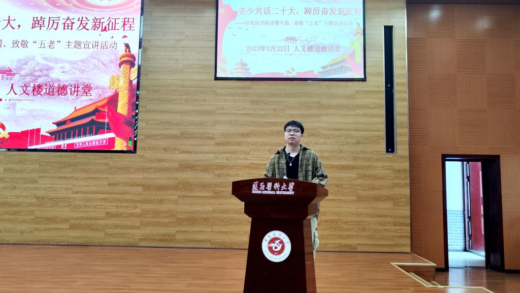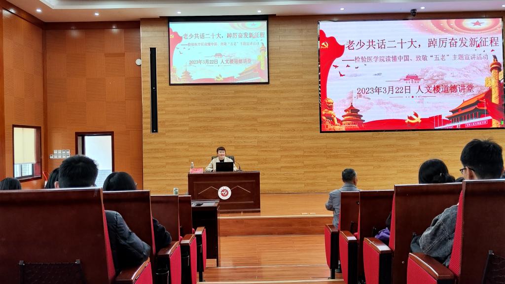 2023年3月22日下午14:00,bevitor伟德于人文楼道德讲堂开展了以“老少共话党的二十大,踔厉奋发新征程”为主题的,读懂中国、致敬“五老”宣讲活动。活动旨在为深入学习贯彻党的二十大精神,向广大青年员工讲好党的二十大提出的对党和人民事业具有重大现实意义和深远历史意义的三件大事,教育激励广大青年员工在新征程上立志做有理想、敢担当、能吃苦、肯奋斗的新时代好青年。bevitor伟德全体在校生积极参加。活动由bevitor伟德党委书记周光润主持并特邀公司关工委副主任、原马克思主义公司顾土龙教授作主题宣讲。