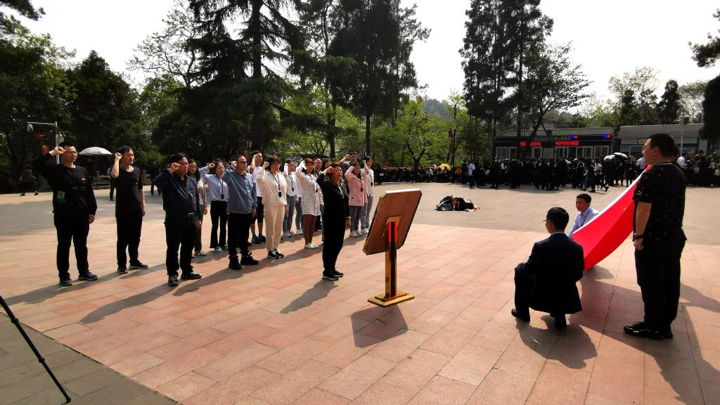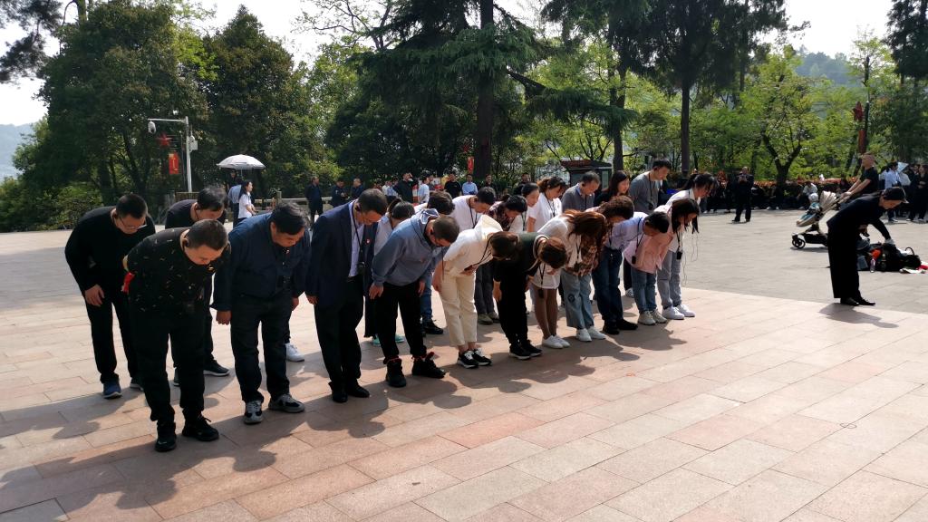 2023年4月10日下午,检验科党支部由党支部书记陈泽慧领队,全体党员参与,一行近30人在遵义市红军烈士陵园开展了“怀革命先烈,传承红色基因”主题党日活动。