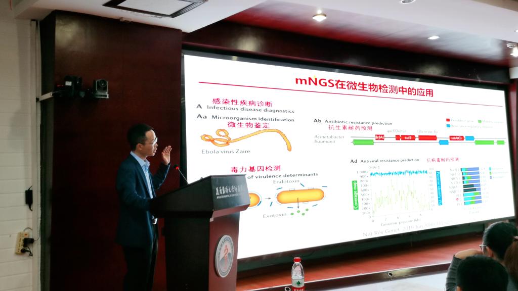 随后授课环节,由黄健教授、向加林副教授、曹喻副教授分别就《宏基因组二代测序技术在病原微生物检测中的作用》、《实验室文档及在线填写系统介绍》、《关节液检验存在的问题》相关专题内容进行了精彩授课。