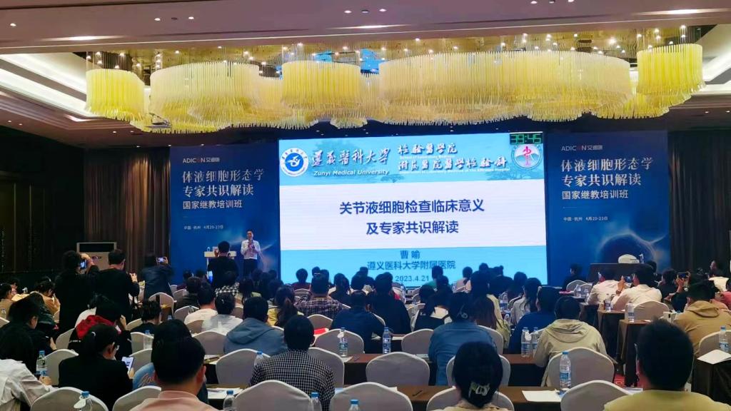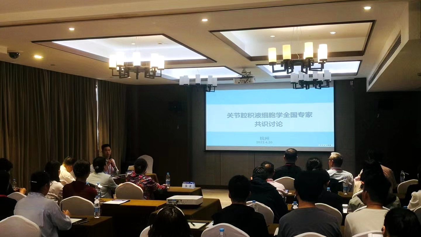 2023.4.19-22日,体液细胞形态学专家共识解读国家继续教育培训班在浙江省杭州市召开。来自全国的87名细胞形态学专家及300余名同仁参会。据悉,本次培训班涵盖体液细胞形态学多项专家共识探讨、专家授课、病例分析、体液细胞现场阅片指导等多项环节;我科曹喻副教授主持《关节腔积液细胞形态学专家共识》讨论和修订并授课,张柯老师随行参会学习。