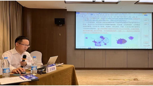 4.20日-4.23专家授课环节,首先由杭州艾迪康公司的负责人潘超致开幕辞并就 “体液标本流程与质量控制要求”精彩授课。随后吴茅教授、周道银教授、许绍强教授、段爱军教授、曹喻副教授分别就浆膜腔积液、支气管肺泡灌洗液、脑脊液、前列腺液、关节腔积液的专家共识联合临床病例做了详细的解读和授课。此外,张建教授、赵成艳教授就《全身各位部分的细针穿刺样本形态和支气管刷片肺部穿刺的细胞学形态》;缪峰教授就《典型的寄生虫感染人的病例》;闫立志教授就《尿液沉渣染色的多种方法与临床意义》;北京协和医院张时民教授就《体液中的各种结晶的临床意义》;杨凡教授、孙翠莲教授、邓飞教授、岳保红教授等多位知名专家进行了精彩授课与病例分析。会议最后举行了精彩的体液细胞现场阅片及指导环节。