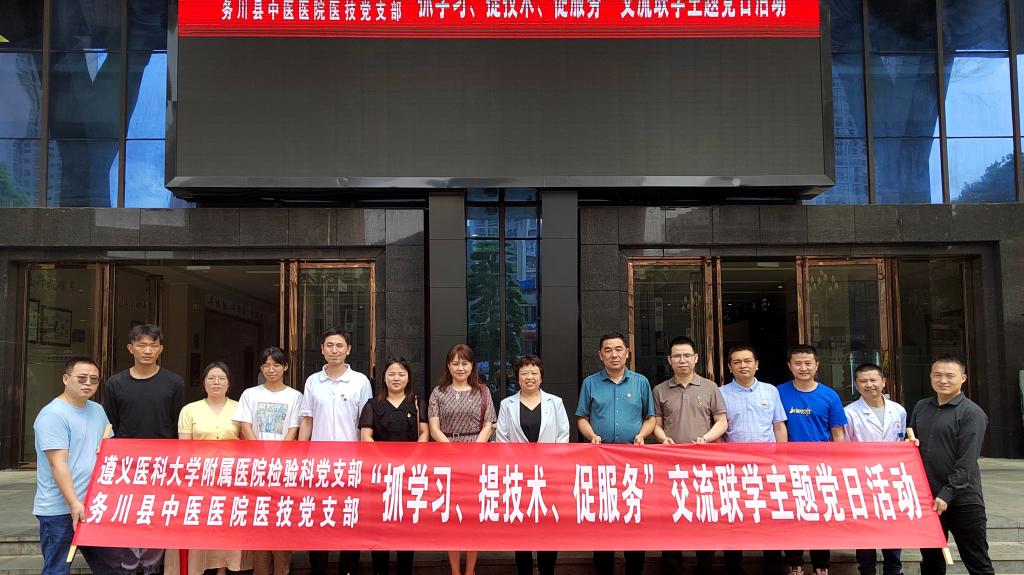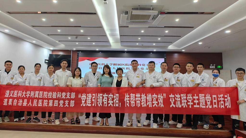 2023年6月7日至9日,BEVITOR伟德附属医院检验科党支部赴务川、道真、正安县人民医院,中医院等七家区县级医院开展“抓党建、交流联学、促发展”主题党日活动。经检验科党支部认真策划、组建专家团队四人,由检验科党支部书记陈泽慧同志带队参加活动。活动内容以检验专科联盟签约仪式、集中授课及实验室交流等方式开展。