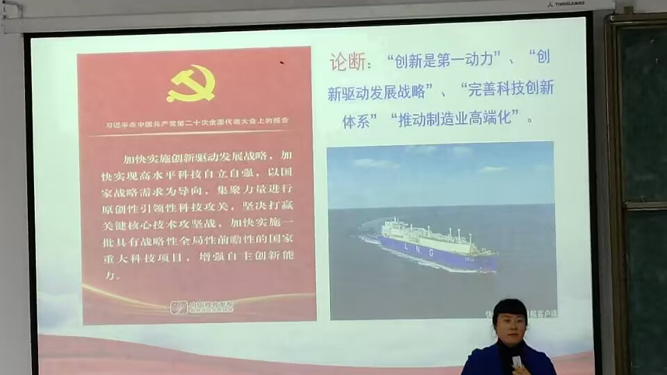 周书记以“从中国制造理解党的二十大报告重要论断”为题对同学们进行思想政治教育。周书记从现实着手,深入全面分析了国际形势与我国国情,结合我国制造业系统性优势、面临的机遇和挑战,向同学们形象地阐述了《党的二十大报告》中“创新是第一动力”“创新驱动发展战略”“完善科技创新体系”“推动制造业高端化”等重要论断,引导员工理解中国经济“形”稳“势”升,看准当前的“形”,看清长远的“势”,始终保持战略定力和发展信心、更好统筹发展和安全、持续巩固经济恢复向好态势、扎实推动高质量发展等国家战略。周书记还结合时事新闻与我国科技制造业的艰难发展历程,告诉同学们讲好中国故事的重要性和必要性。她向同学们强调,百年未有之大变局,需要青年一代统一思想、团结一心,紧紧团结在党中央周围,汇聚成一股战无不胜的磅礴力量。最后,周书记以讲好中国故事为核心,呼吁同学们自强不息,励精图治,再创辉煌。