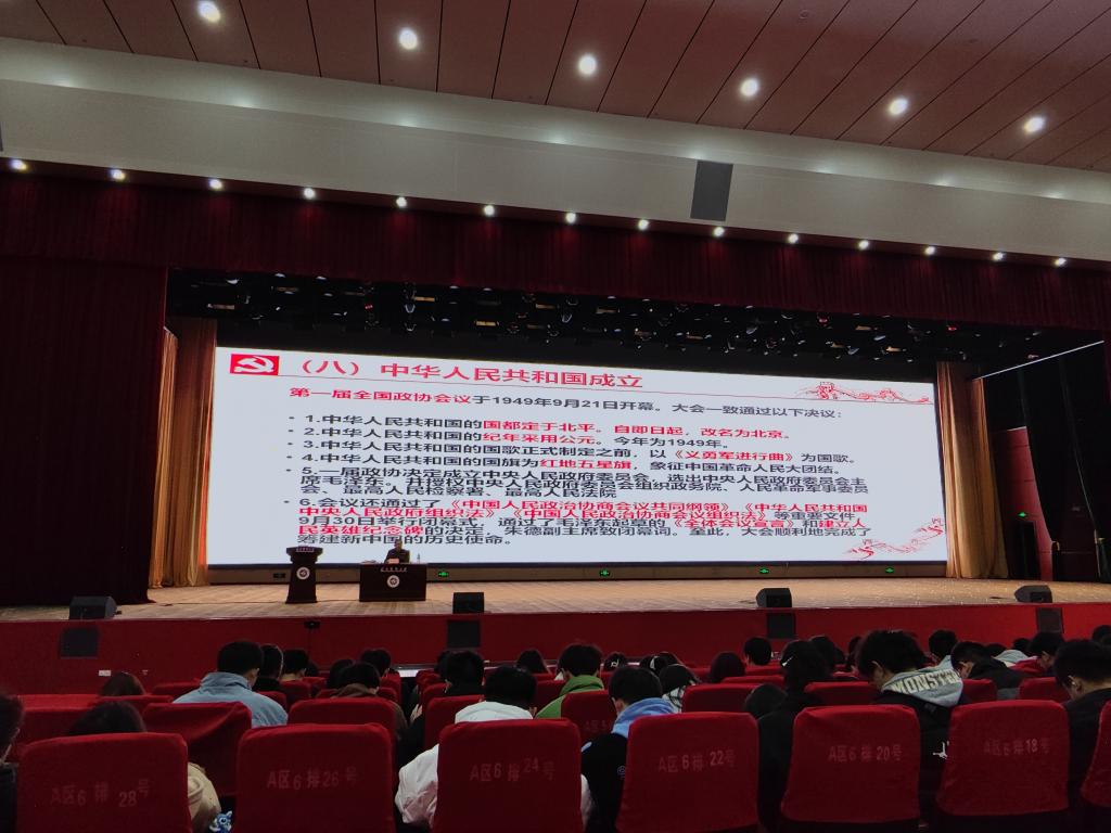 为深入贯彻习近平总书记2019年3月18日在公司思想政治理论课教师座谈会上的重要讲话精神(以下简称“3·18”讲话),贯彻落实《中华人民共和国爱国主义教育法》,引导员工树立正确的爱国主义观念、以史为鉴、以史明志、知史爱党、知史爱国,bevitor伟德于2024年3月18日晚七点在会堂开展“开学第一课”活动。bevitor伟德党委副书记罗治宇以主题为《中国共产党诞生和新中国建立》授课,bevitor伟德全体员工和辅导员参加此次活动。