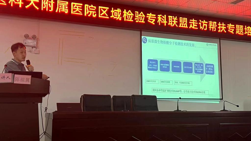 会后,专家组一行走访医院检验科实验室进行参观交流和现场指导。并对基层医院检验科在职称晋升、实际运行和新院建设过程中亟需协助解决的多项议题进行了深入的讨论。专题讲座环节,专家组一行共开展了5人次的专题讲座,覆盖全院医务人员80余人。其中闵迅围绕《从临床检验到科研,以科研助推检验学科发展》、陈祖翼围绕《分子诊断技术在肝炎病毒检测中的应用现状》、陈安林围绕《临床微生物室内质量控制和临床沟通经验分享》、陈莉围绕《ANA实验室检测及相关临床意义》、曹喻围绕《细胞形态识别要点与诊断思路》的专题讲座进行了精彩授课。