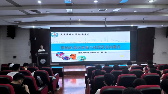 随后进入授课环节,医学检验科副主任兼质量主管杨艳教授、医学检验科主任闵迅教授、医学检验科副主任兼技术主管黄健教授,分别围绕《ISO15189医学实验室认可文件解读(一)》《原始样品的采集与处理及咨询服务》《即时检验(POCT)的质量管理与运行实践》《AI时代:检验人何去何从?》等相关专题内容,进行了精彩的授课。