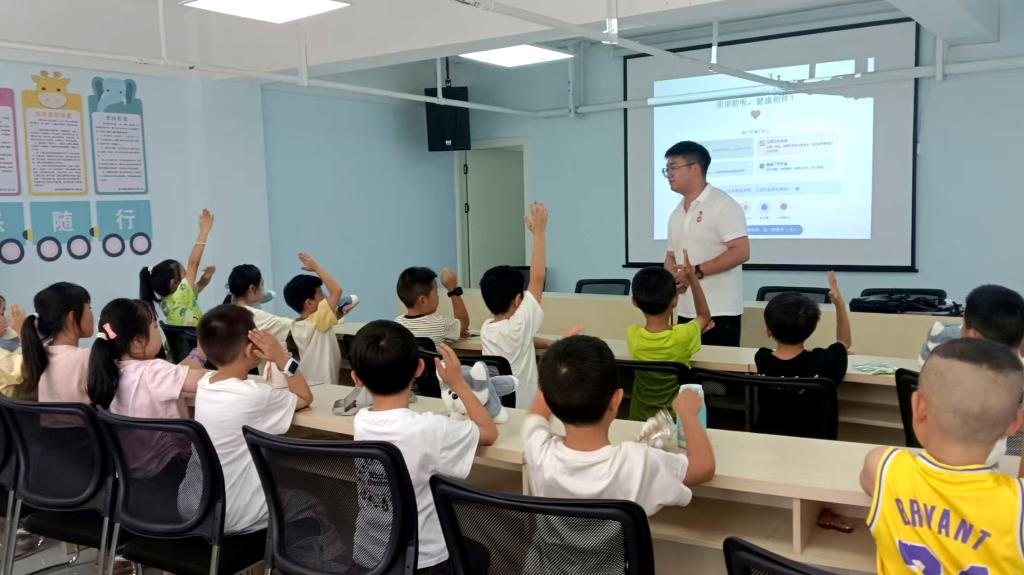 “原来蔬菜水果是保护我们健康的‘小卫士’呀!”在精心设计的“食物王国探险记”互动课堂上,引人入胜的科普动画瞬间抓住孩子眼球,实践队员摇身一变成为“营养探险家”,将复杂的膳食宝塔拆解成趣味关卡,蛋白质、维生素等专业名词化身为闯关的“神奇密码”。互动问答环节更是小手林立,欢声笑语不断。孩子们在轻松愉快的氛围中,轻松掌握均衡饮食的“金钥匙”,明白守护健康的智慧就藏在日常一餐一饭的精巧搭配里。