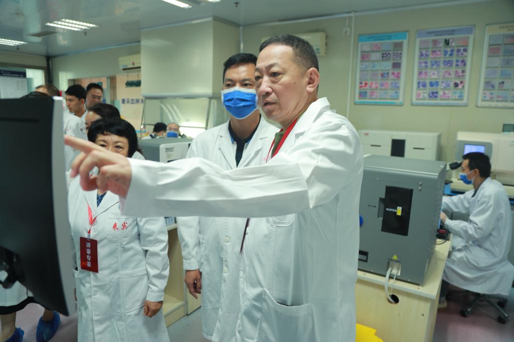 会后,专家组前往医学检验科现场查看,并开展为期3天的评审工作。根据评审流程,专家组紧紧围绕:组织管理、文件评审、现场查看、现场实验、现场提问、形态学考核和对授权签字人考核等工作进行现场检查;专家组还分赴肝胆胰外科、甲乳外科、内分泌科、呼吸二科等临床科室开展专项检查,主要围绕:核查危及值处理记录、抽查护理人员对标本采集流程熟悉程度、询问临床医师对检验与临床沟通咨询服务等形式,对ISO15189涉及的管理要素和技术要素进行了细致检查,并召开了评审组内部会议和实验室沟通会。