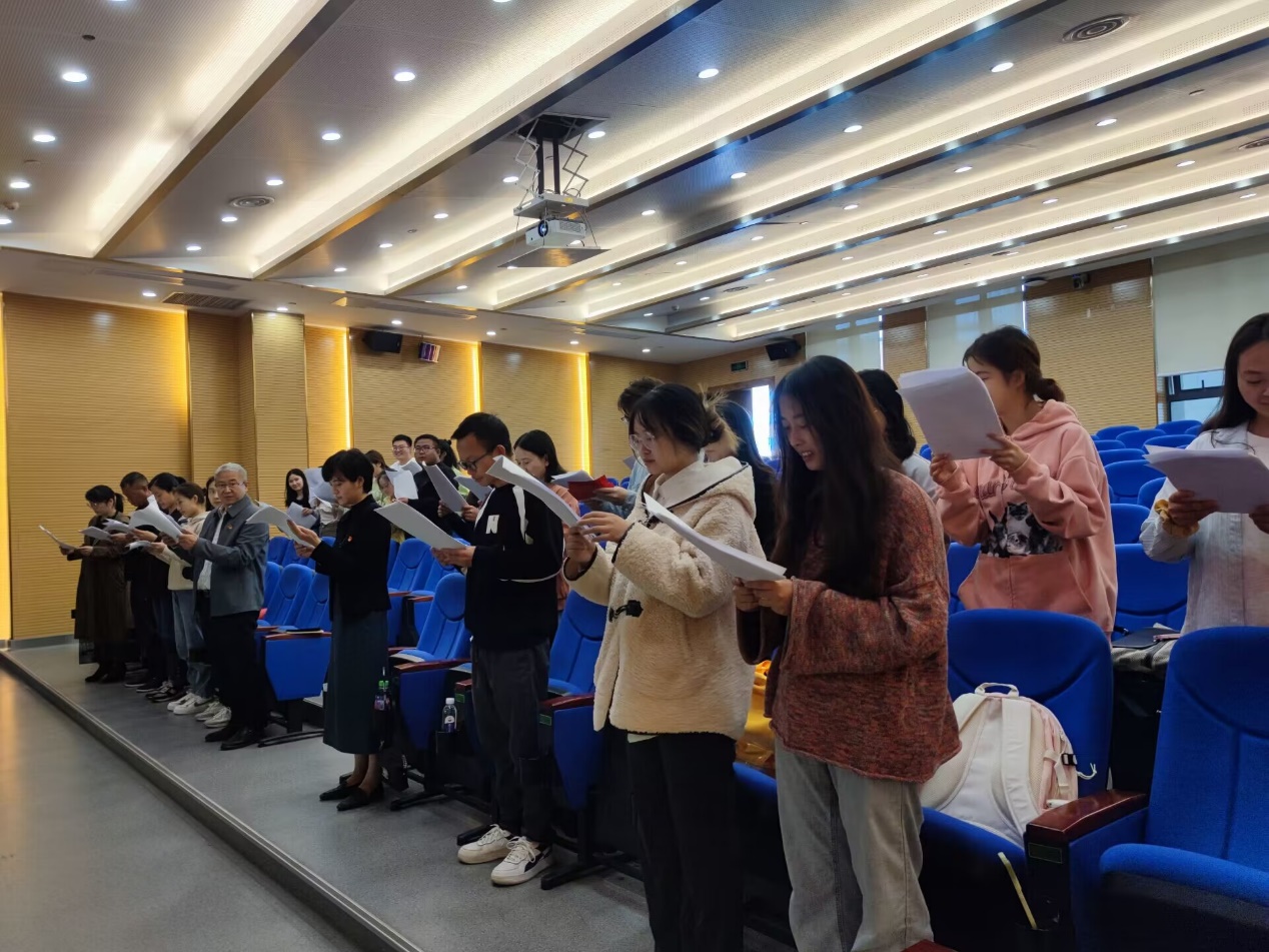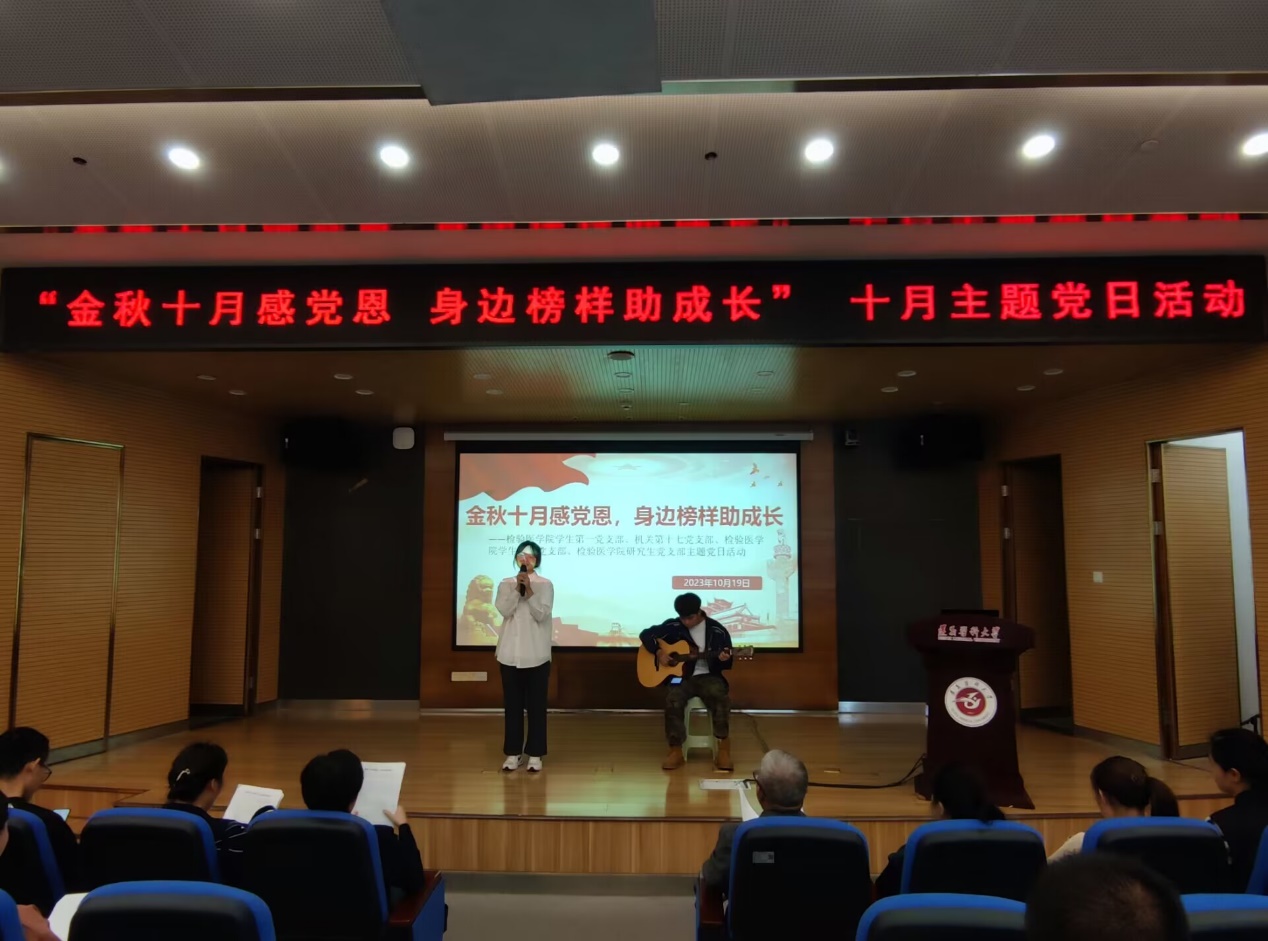 最后,全体同志激情合唱校歌《托起生命的航船》、《我和我的祖国》、朗诵《人民万岁》,以生动的爱国主义教育课和红色文化课,激励着全体党员不忘初心、牢记使命,引导着广大党员团结奋进,扎实工作;并鼓励大家以多样的形式表达自己热爱党、拥护党、永远跟党走的坚定信念,更好地发挥党组织战斗堡垒和先锋模范作用。