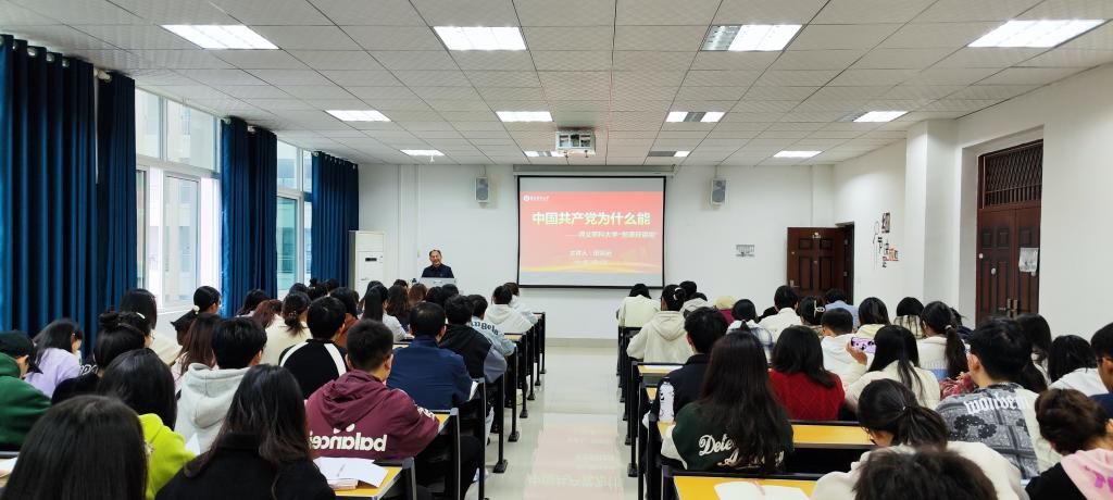 讲授中,田书记通过引用党史故事,解读习近平新时代中国特色社会主义思想和党的二十大精神,旁征博引深度地向大家宣扬了中国共产党的光辉历程。并强调:大家要立志成为德智体美劳全面发展的社会主义建设者和接班人,以中共党员的标准要求自己,努力成为一名高素质应用型人才,做到理论和实践、课内和课外、校内和校外三个结合,增强做中国人的志气、骨气、底气,坚定“四个自信”,常怀有对祖国的忠心、对父母的孝心、对社会的爱心、对他人的诚心、对自己的信心五个心。