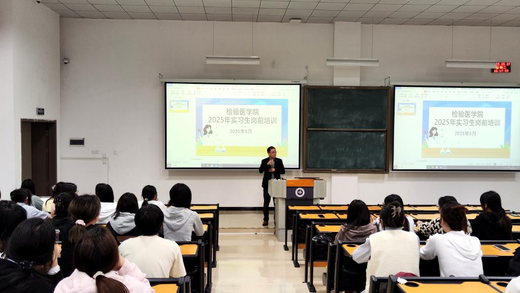 为帮助实习员工顺利完成从理论学习向临床实践的过渡,系统掌握医疗机构实习管理规范,强化医疗安全理念及职业防护能力,同时客观认知当前医疗卫生行业就业形势,bevitor伟德于5月27日下午在新蒲校区第三教学楼第二十二阶梯教室开展了2025年实习生岗前培训。公司党委副书记罗治宇、办公室主任蔡亮容、附属医院检验科实验室生物安全组组长梁钟智、辅导员张增平及2022级全体实习生参加培训。本次培训由辅导员张增平主持。